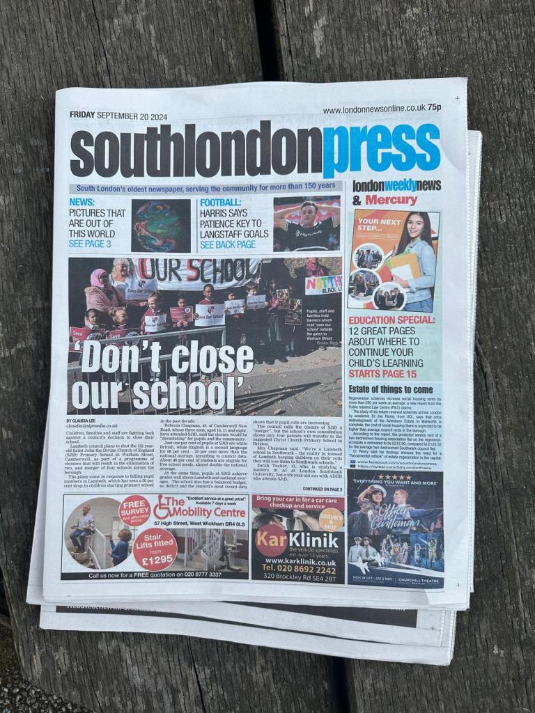 Coverage in The Church Times, front page news in The South London Press and SW Londoner